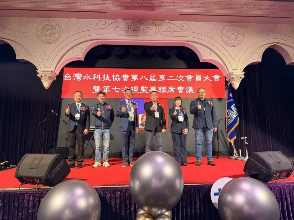 台灣水科技協會於日前舉行第八屆第二次會員大會暨十五周年慶,來自全省120餘家企業會員齊聚台中潮港城,舉辦歡慶活動、業務交流及餐敘晚宴。由理事長謝錦松主持,創會及歷任理事長分別致詞祝賀及期許,同時邀請到高雄市水處理器材公會金理事長、馬來西亞淨水協會廖會長、韓國淨水協會丁會長及中國國際科技促進會傅會長等友會率團前來祝賀共襄盛舉,會後進行聯誼晚宴及會員交流,此外,現場開放會員展示自家商品,進行實質觀摩交流會。
