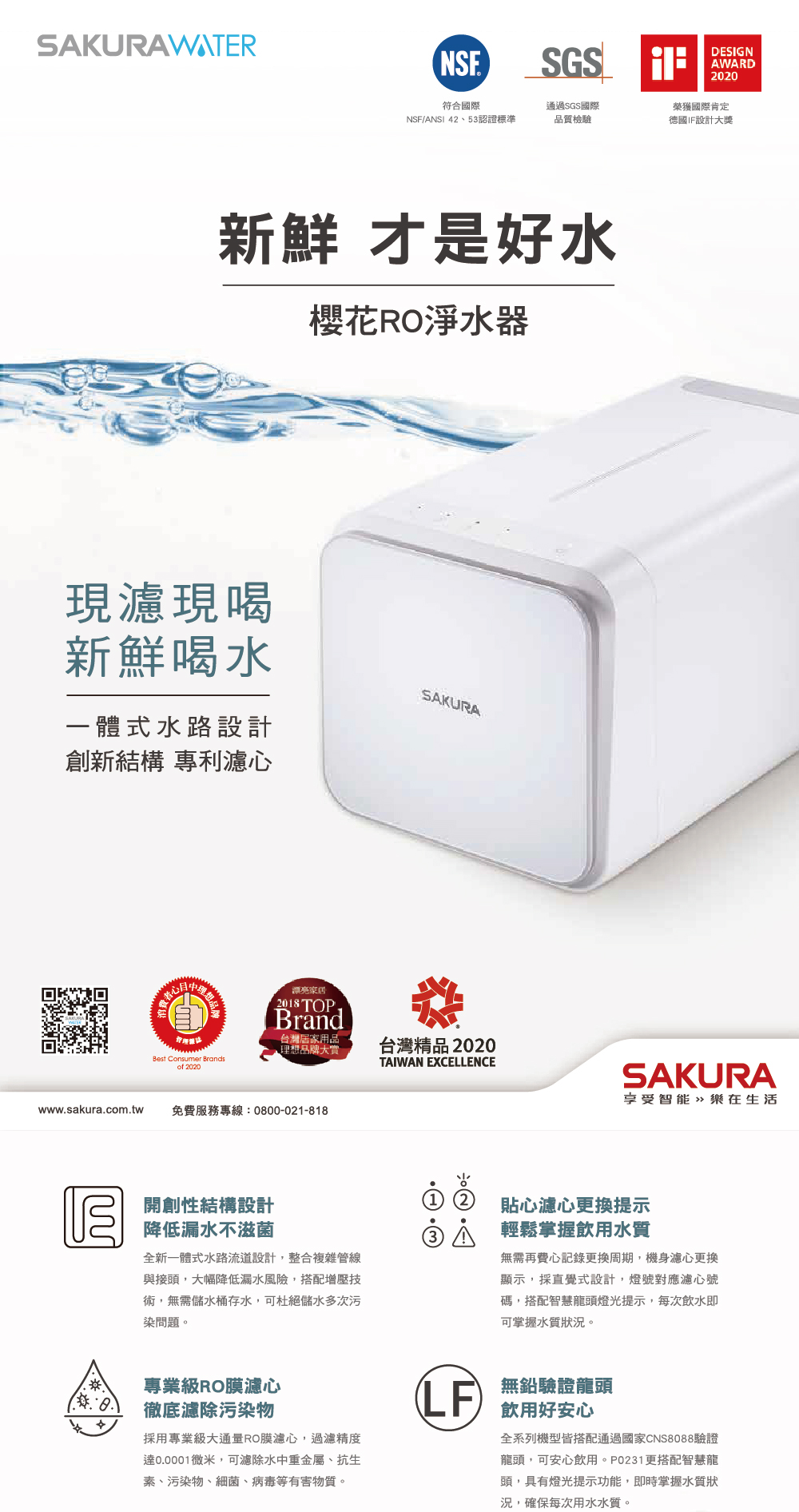 直輸式RO逆滲透| P0231 櫻花RO淨水器(600加侖)【櫻花】【奢華款】