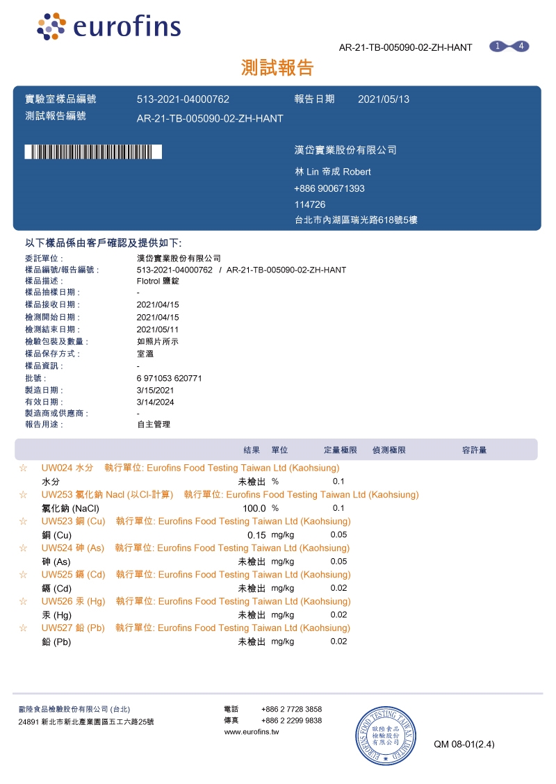 * 業界唯一-符合FDA最新食鹽標準檢驗