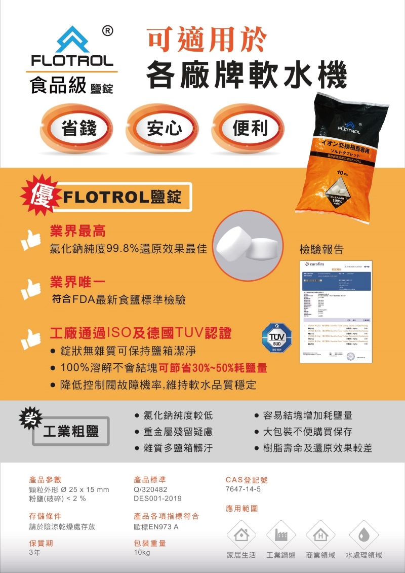 軟水鹽錠|樹脂還原用鹽(10KG)【FLOTROL富洛】