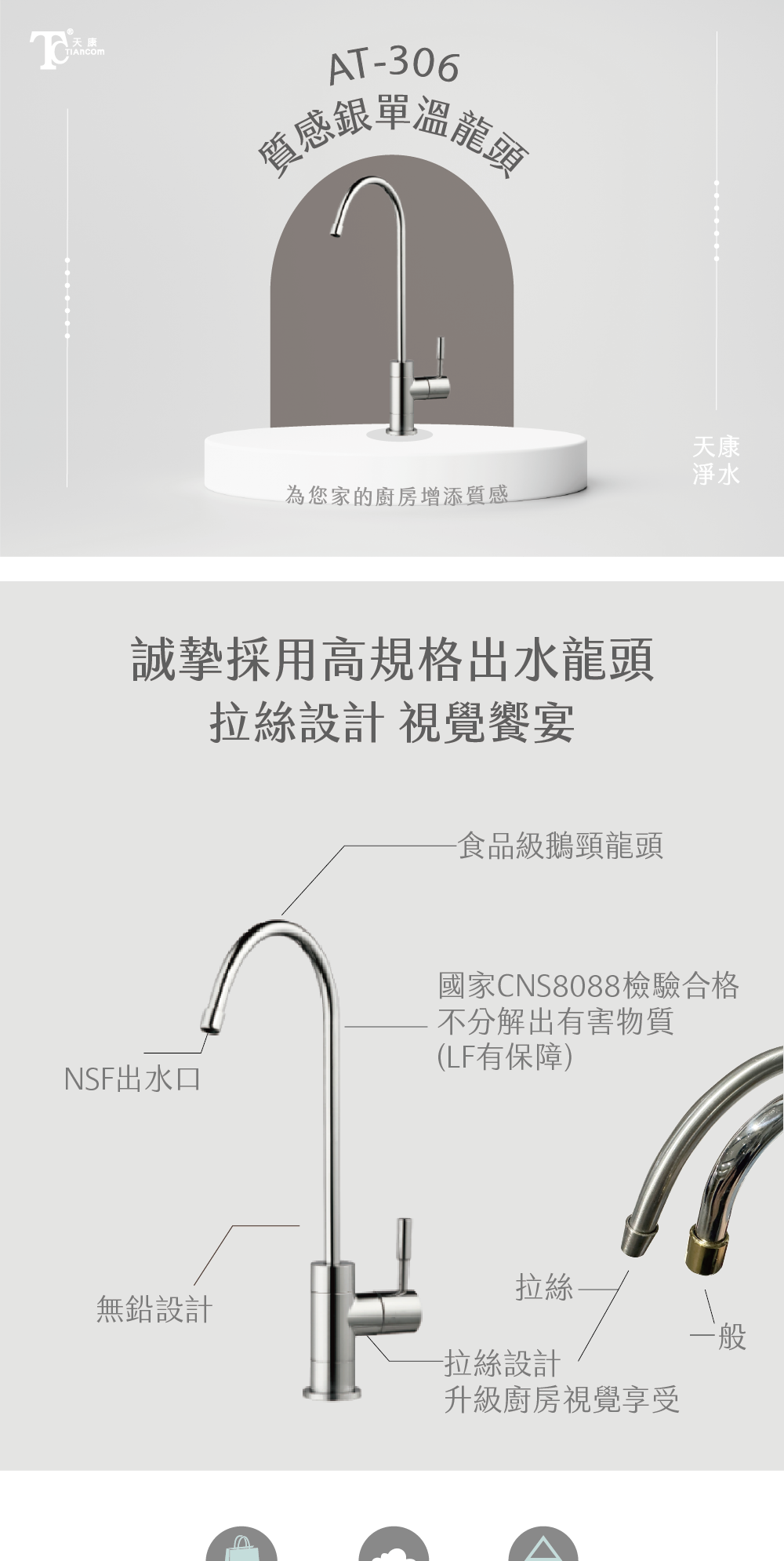 淨水龍頭|AT-306 天康經典拉絲龍頭【天康淨水】經典款