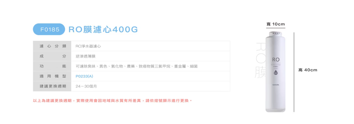 成份:椰殼顆粒活性碳 - 第三道:F0185「RO膜濾心(400G)」X1