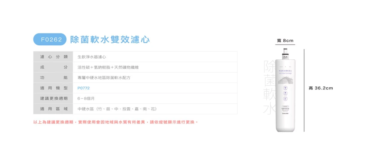 替換濾心|F0262 除菌軟水雙效濾心【櫻花SAKURA】【適用P0772】