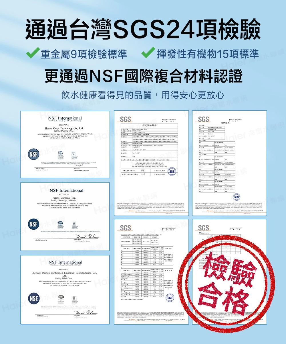 • 通過台灣SGS檢驗及美國NSF嚴格檢驗