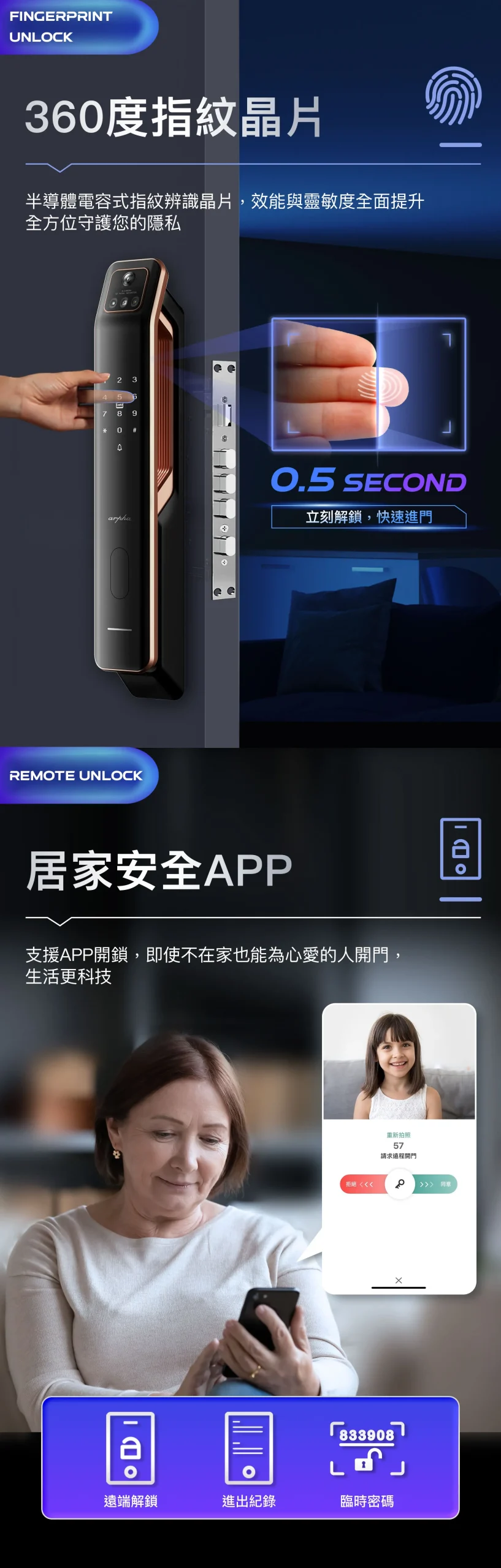 - 搭配arpha手環,簡單便利,銀髮族和幼童也能輕鬆使用