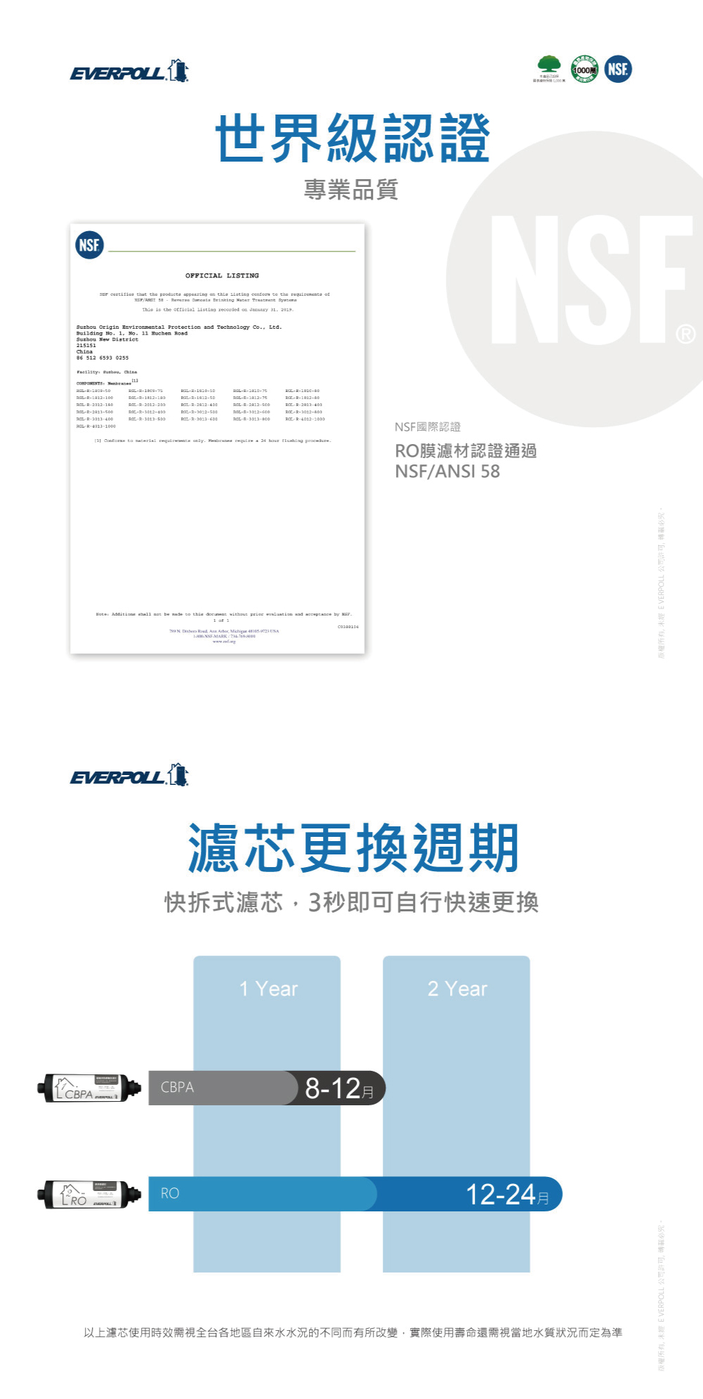 * 第二道 : RO,約12~24個月更換一次(或依水質)