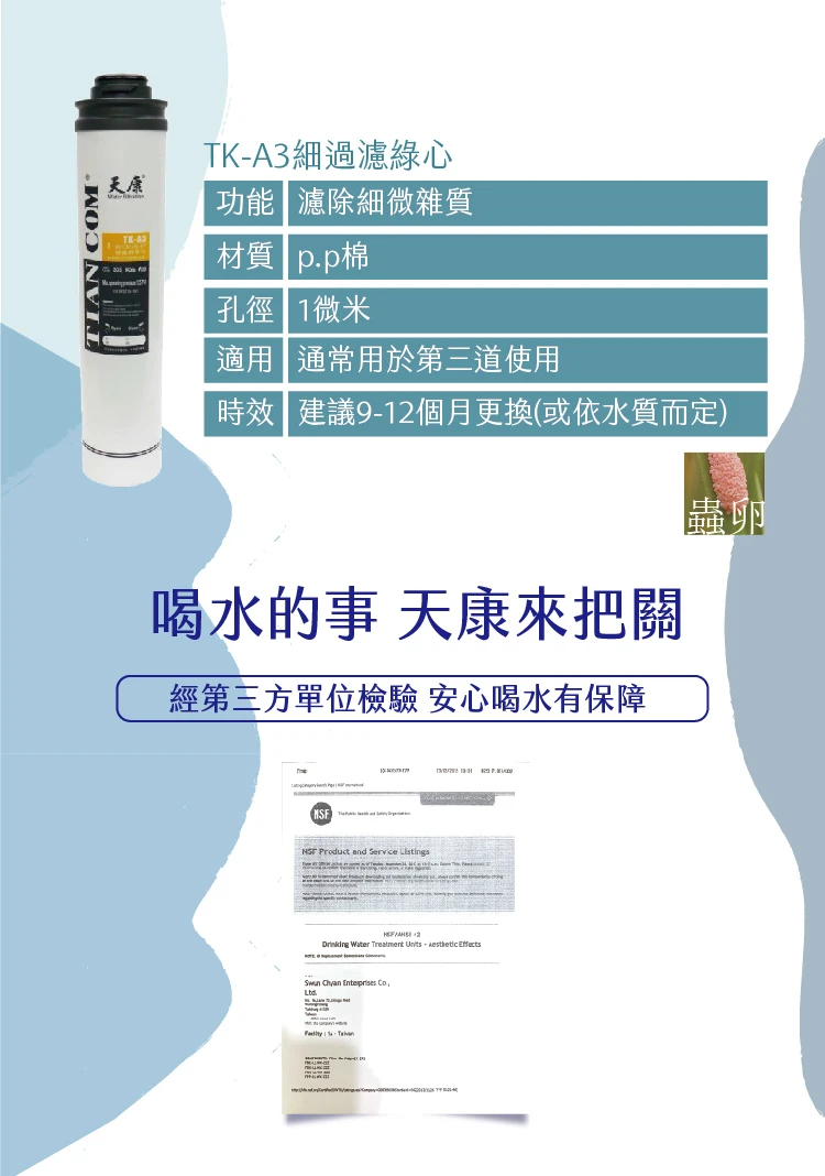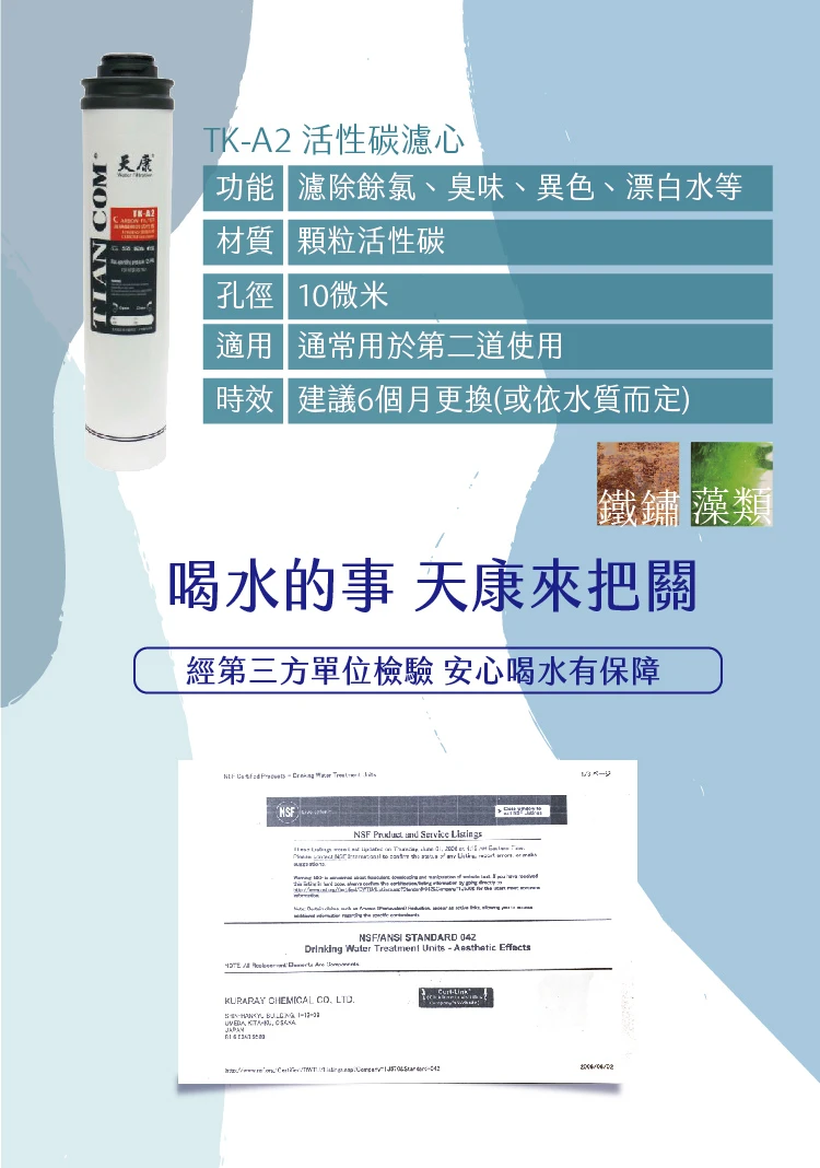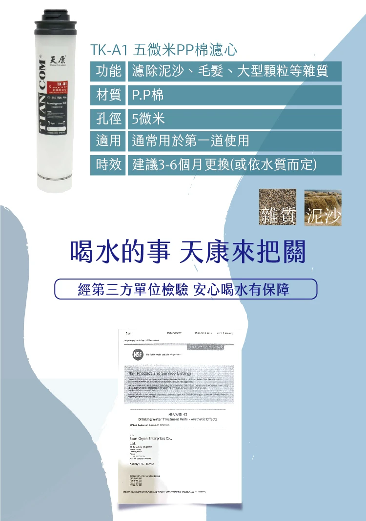 卡式濾心|TK 前置3道/ TK-A1/ TK-A2 / TK-A3 / PP濾心 / 活性碳 / 細過濾【天康淨水】