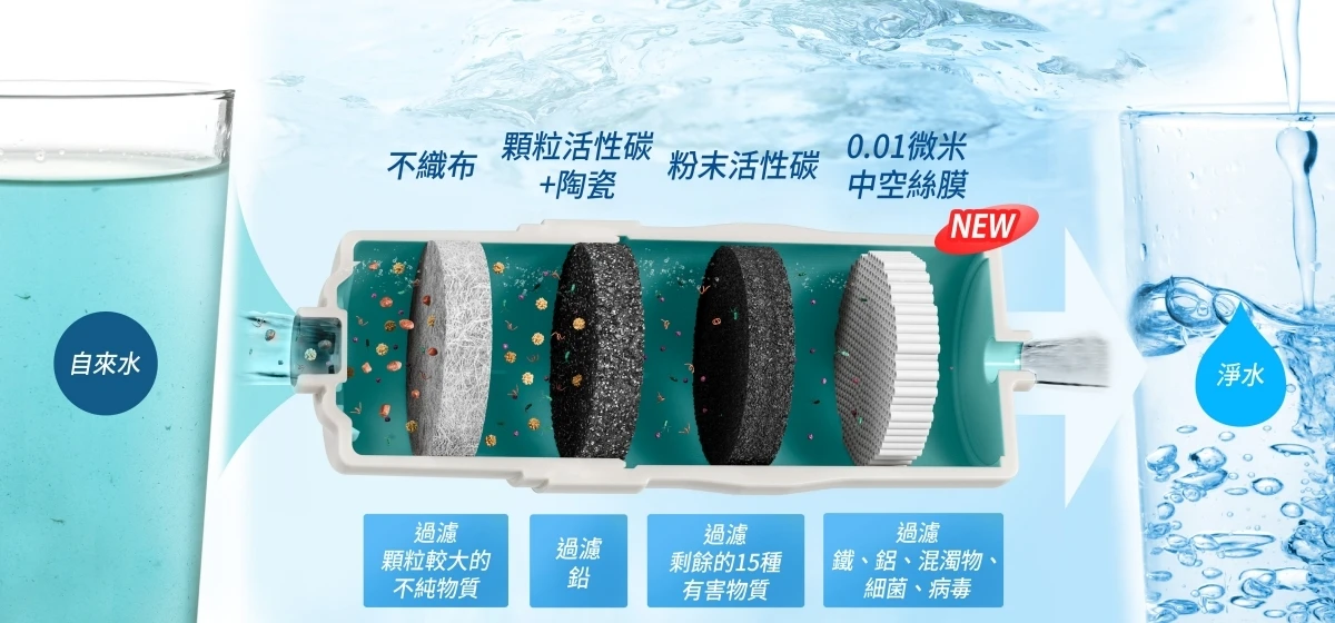 * 濾除鉛、多種有害及致癌物質、細菌、病毒