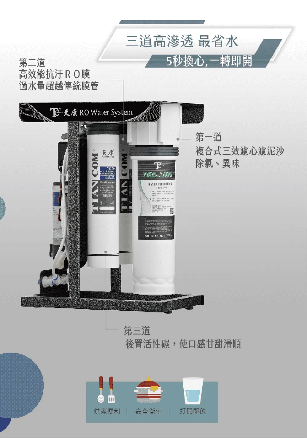* 第二道 : TKB-RO250,約18-24個月更換一次(或依水質)