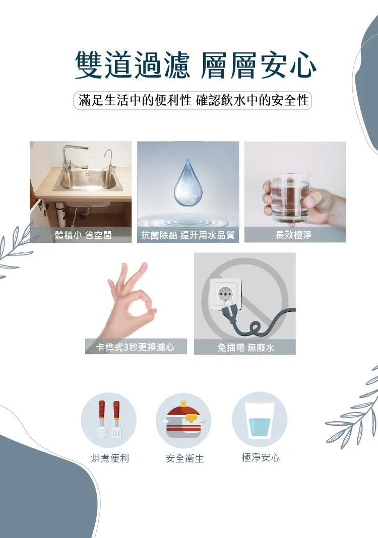 * 高效殺菌雙道即達安心直飲標準