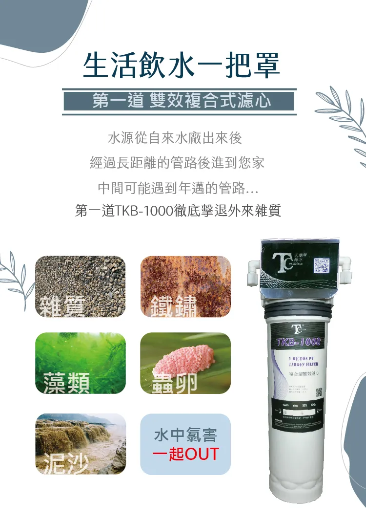 * 第一道 : TKB-1000,約6個月更換一次(或依水質)
