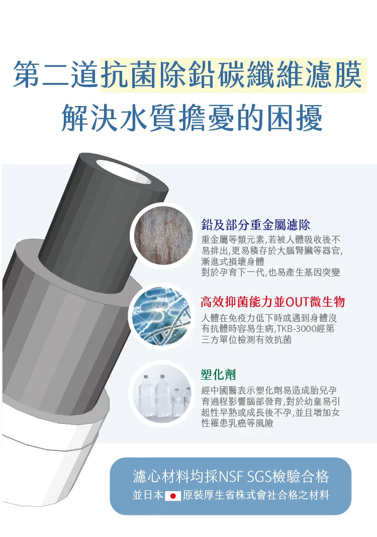 * 第二道 : TKB-3000,約1年更換一次(或依水質)