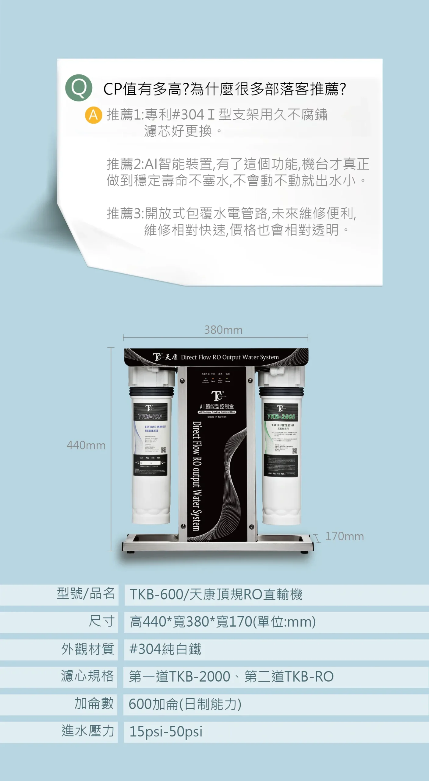 第二道 : TKB-RO,約18-24個月更換一次(或依水質而定)
