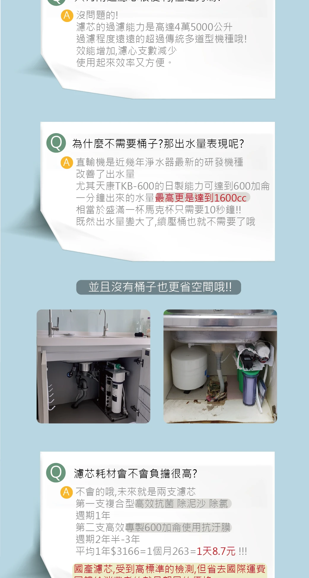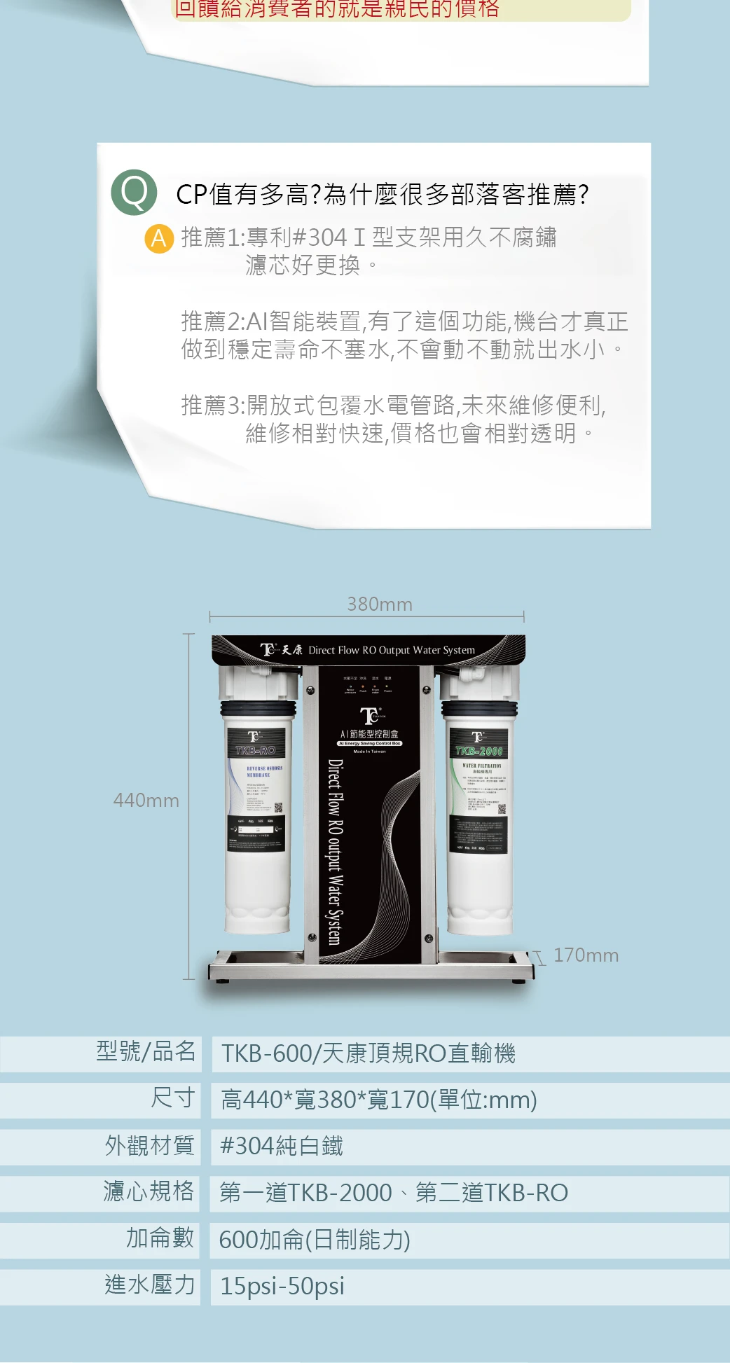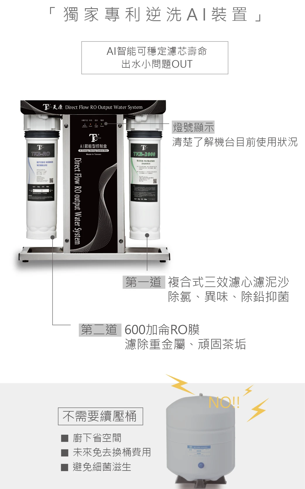 * 第二道 : TKB-RO,約18-24個月更換一次(或依水質而定)