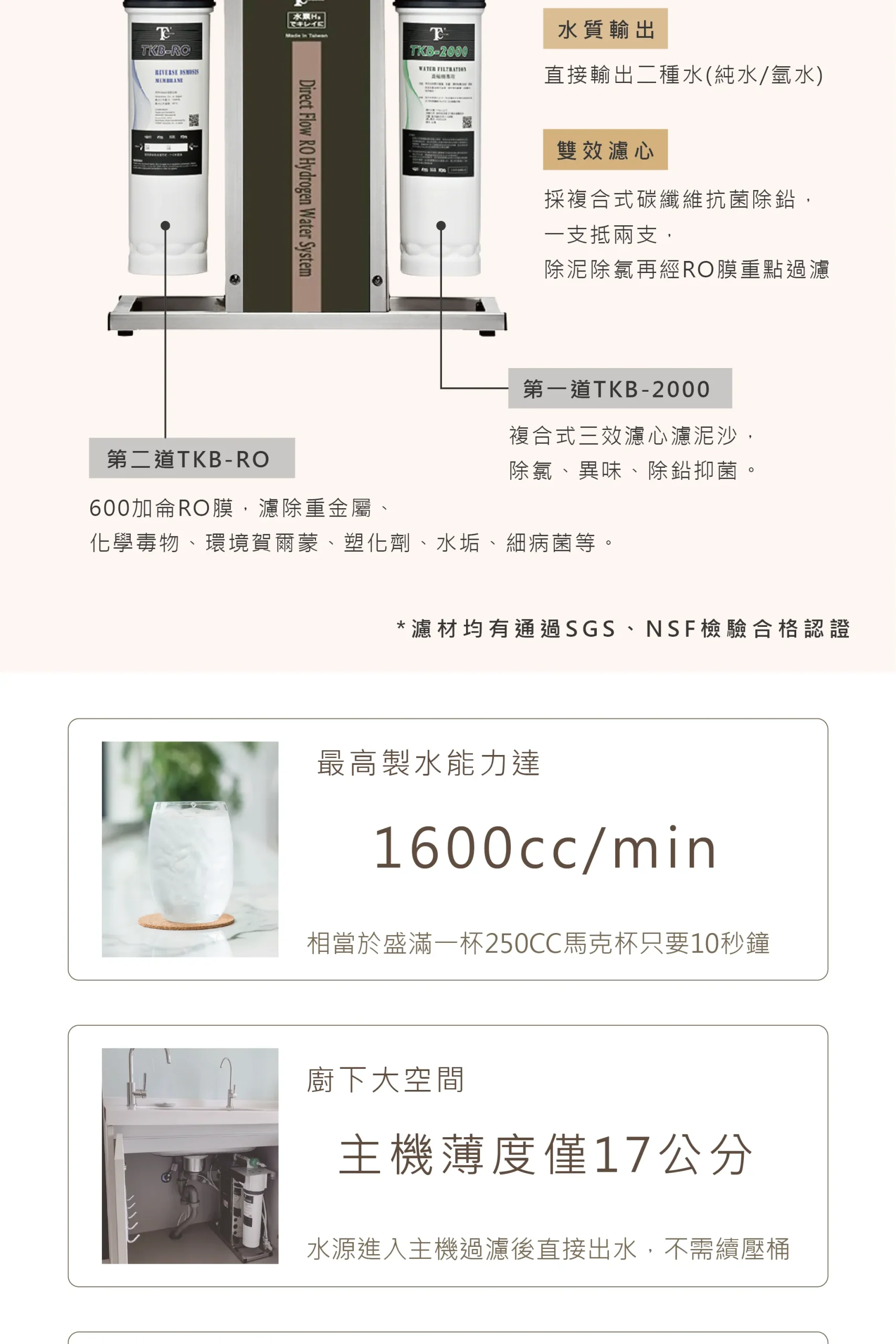 * 第二道 : TKB-RO,約18-24個月更換一次(或依水質而定)